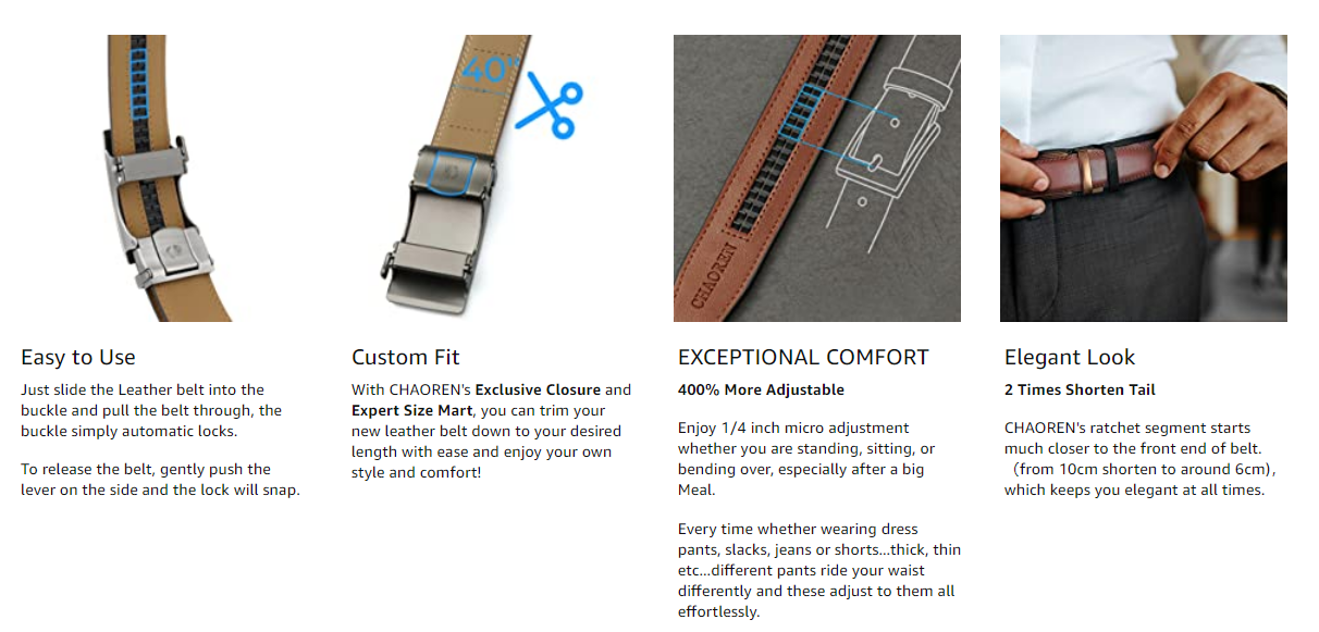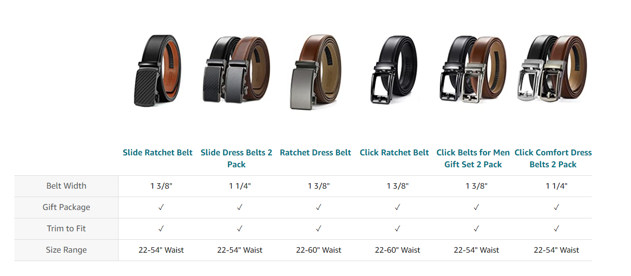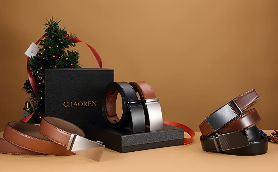 CHAOREN Leather Ratchet Belt 2 Pack Dress with Click Sliding Buckle 1 3/8" in Gift Set Box - Adjustable Trim to Fit